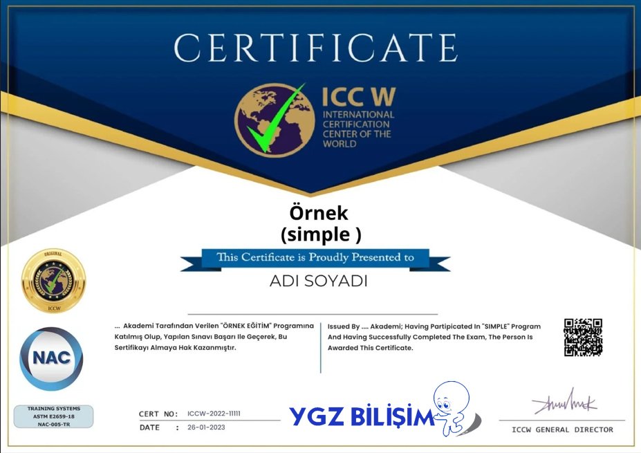 INTERNATIONAL CERTIFICATION CENTER OF THE WORLD (DÜNYA ULUSLARARASI SERTİFİKASYON MERKEZİ) TARAFINDAN ONAYLANIP AKREDİTE EDİLEN VE TÜM DÜNYA ÜLKELERİNDE GEÇERLİ OLAN SERTİFİKALAR